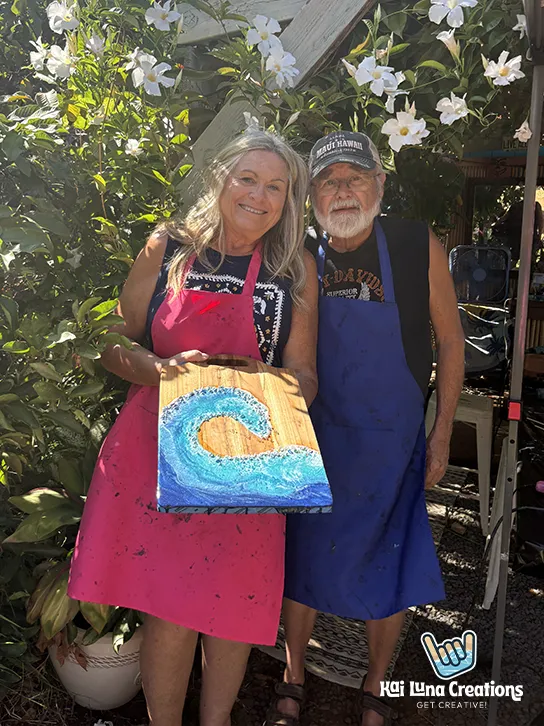 As the heart and soul behind Kai Luna Creations, Dara embodies a deep passion for art, family, and the vibrant spirit of Hawaii. A devoted mother to her son and two beloved fur babies, she understands the power of creativity to unite and inspire. With a profound love for the ocean and a firm belief that art resides within everyone, she fosters a welcoming space where individuals can unleash their inner artist. Her dedication to teaching and creating is fueled by a genuine desire to share the beauty of resin art and the rich culture of Hawaii. Through her warm enthusiasm and unwavering commitment, she not only crafts stunning pieces but also cultivates a sense of belonging and connection within the Kai Luna community.